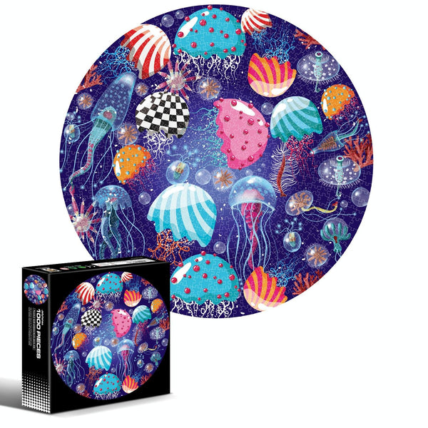 Round Shape Irregular Plane Puzzle Jigsaw Toy 1000 Pieces(Jellyfish)
