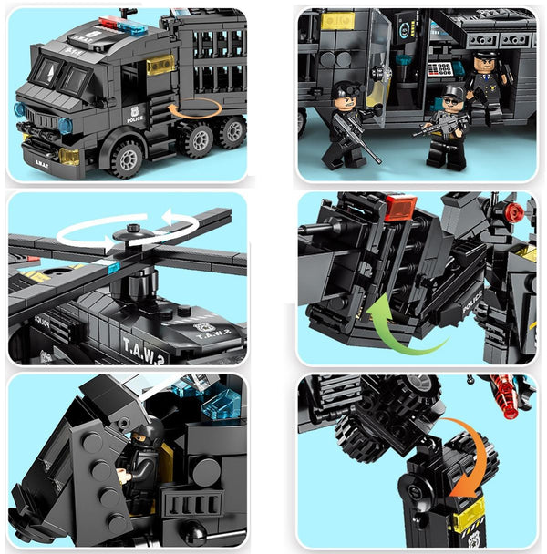 SWAT Shape Mecha Building Blocks Small Particle Assembled Educational Toys, Spec: 8-in-3 Blackhawk SWAT
