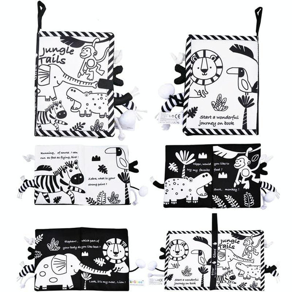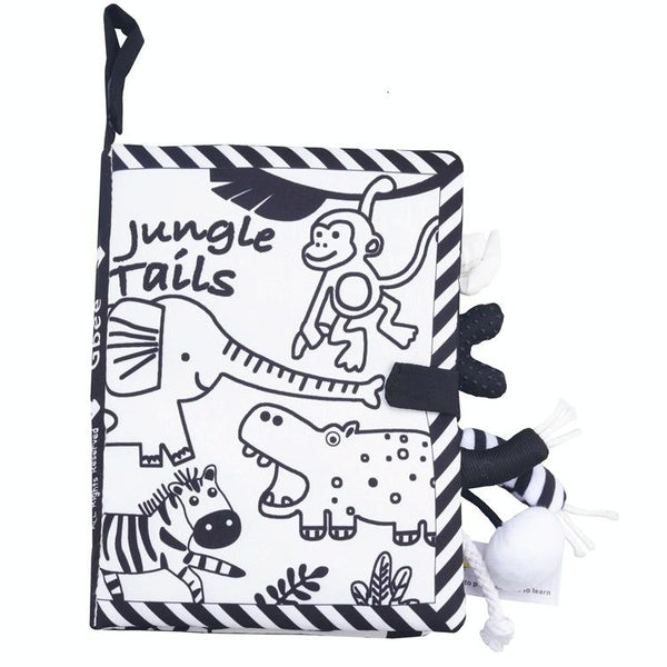 Tail Cloth Book Baby Enlightenment 3D Early Education Cloth Book(Black and White Jungle)