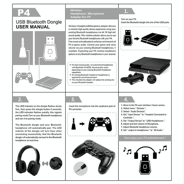 3. This USB adapter will connect to any Bluetooth audio device when you plug into your PS4 USB slot. It comes with a wireless microphone that will enable you to chat when you plug into the PS4 controller.