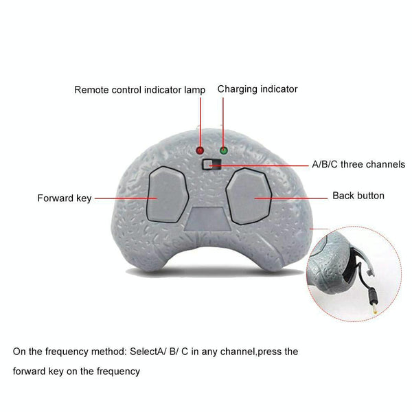 4.Proofreading Frequency Method: Select any of the A, B, C channels, press the forward key to proofreading frequency, If the frequency is inconsistent, switch anther channel, press the forward key to re-proofreading frequency. When proofreading frequency success, dinosaur toys will move up.