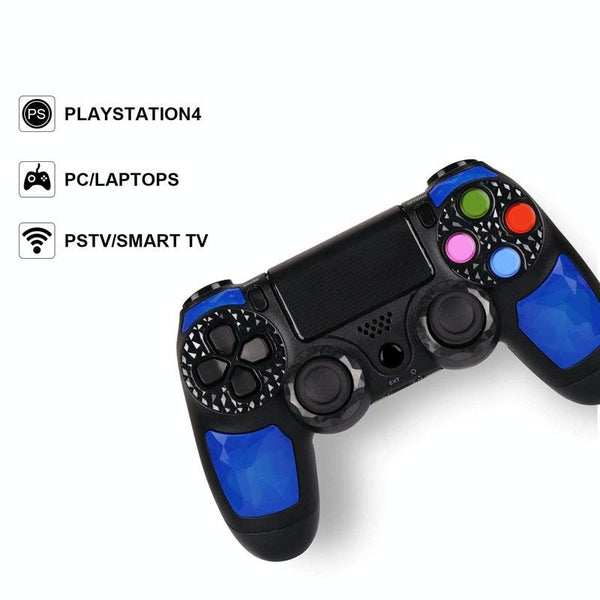 Wireless Bluetooth Diamond Texture Shock Touch Plate Game Handle Controller with Smart Indicator for Sony PS4(Blue)