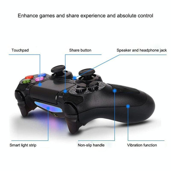 2. Built-in speaker and 3.5mm stereo audio jack, Multi touch and clickable touch pad, Integrated light bar offer exciting experience and interact with your games.