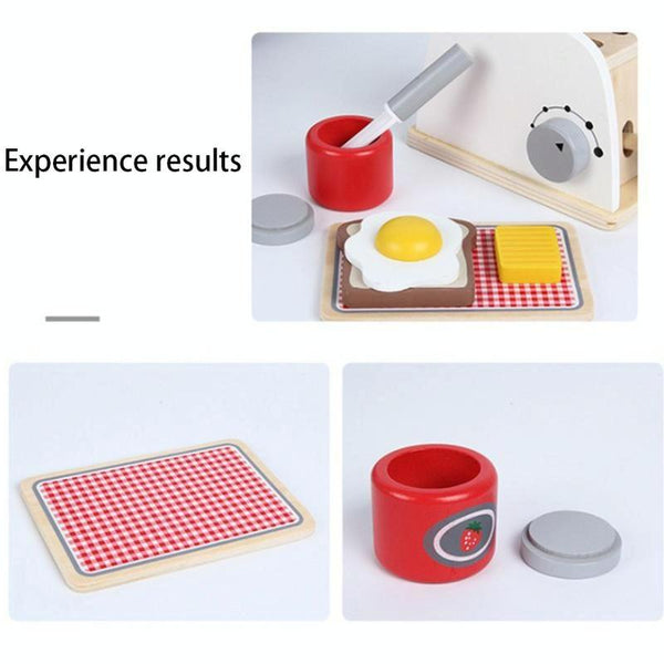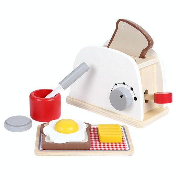Wood Pretend Play Kitchen Role Play Game Learning Toy Simulation Toasters Bread Set for Children