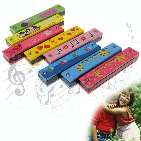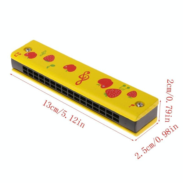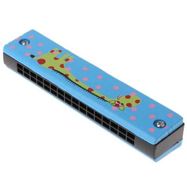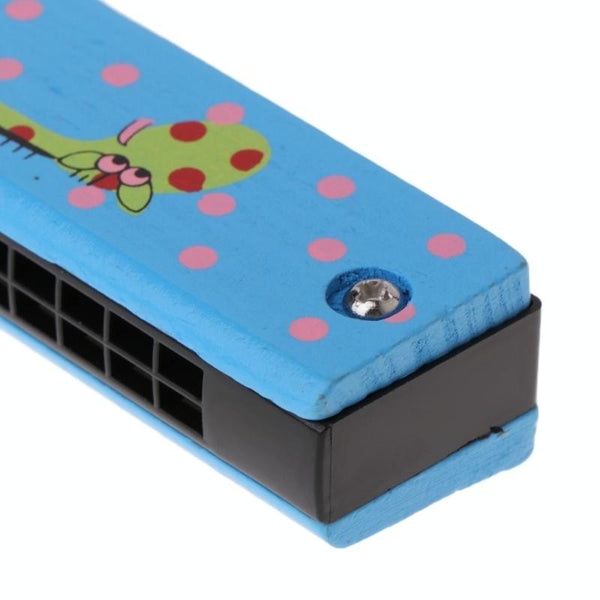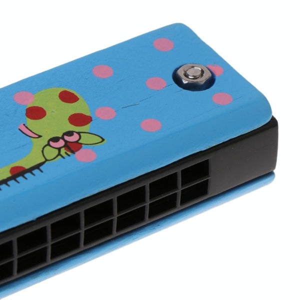 Wooden 16-holes Double-row Harmonica for Beginners, Color:Blue giraffe