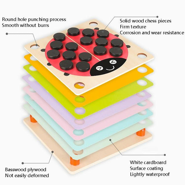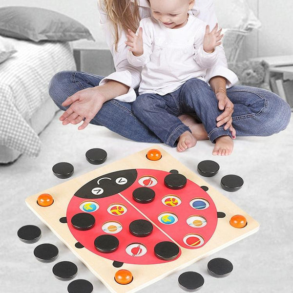 Wooden Beetle Memory Chess Parent-Child Interactive Brain Puzzle Game(Red)