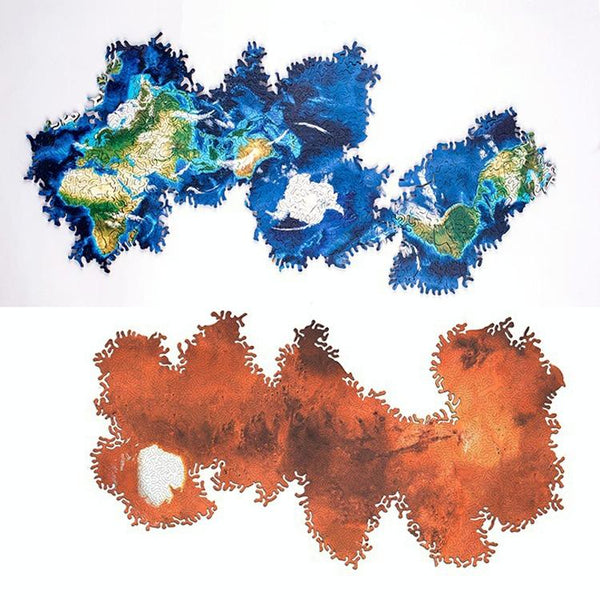 Wooden Irregular High Difficulty Puzzle Infinite Galaxy Mystery Puzzle Toy, Colour: Mars+Earth Double-sided