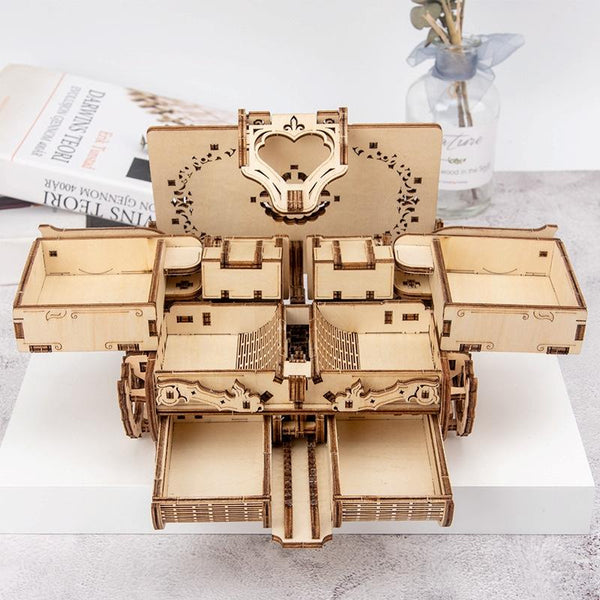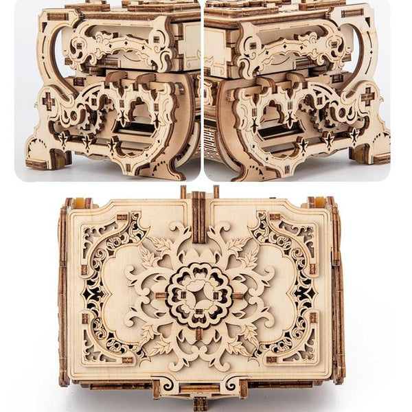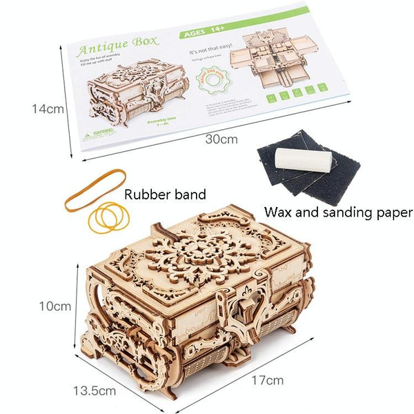 Wooden Machinery Antique Box DIY Gift Gear Rotating Model 3D Assembly Puzzle Educational Toy
