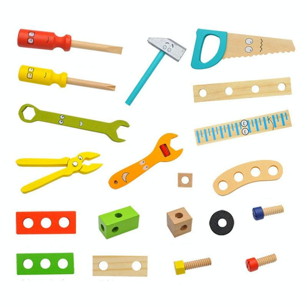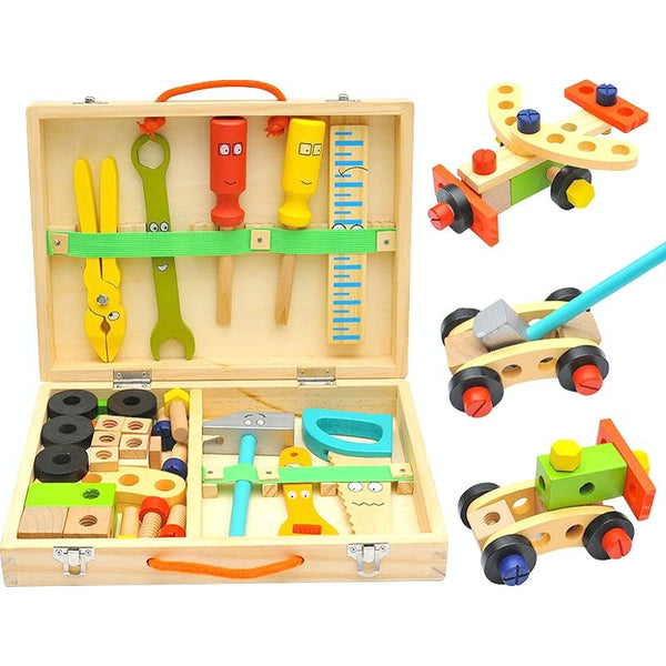 Wooden Simulation DIY Children Cartoon Toolbox Toys Play House Early Education Toys