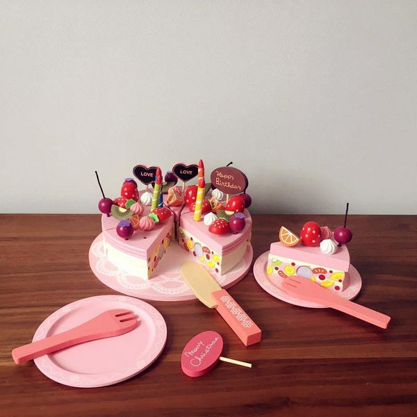 Wooden Strawberry Double-Layer Birthday Cake Children Educational Role-Playing Toy(Pink)