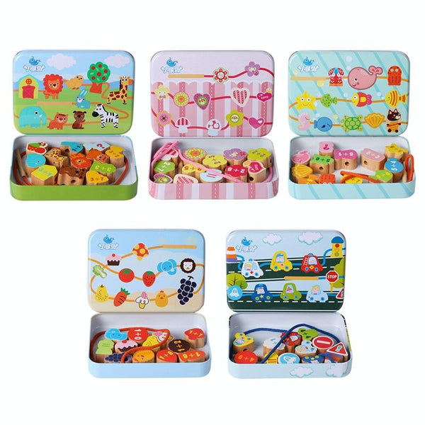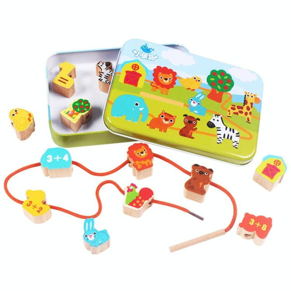 Wooden Toys Baby DIY Toy Cartoon Fruit Animal Stringing Threading Wooden Beads Toy(Animal)
