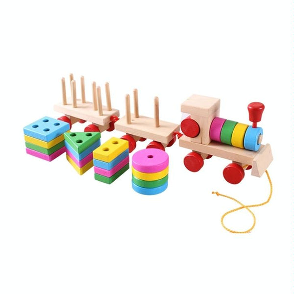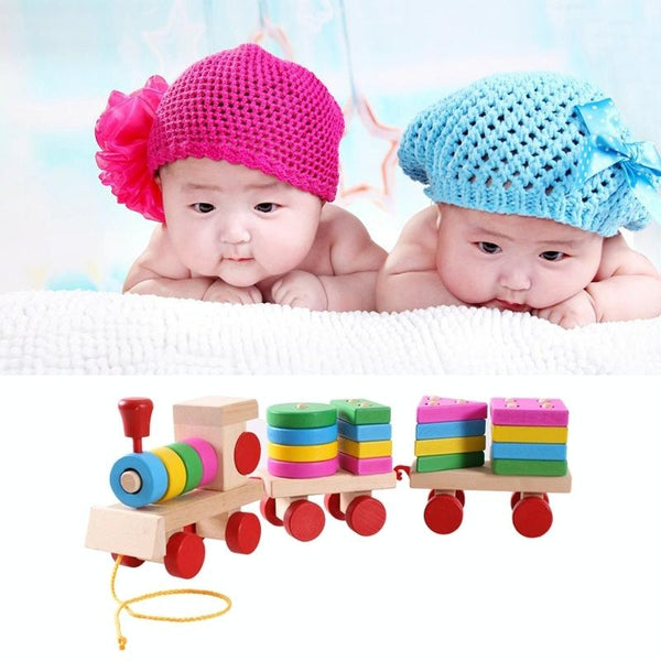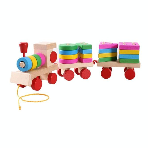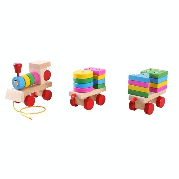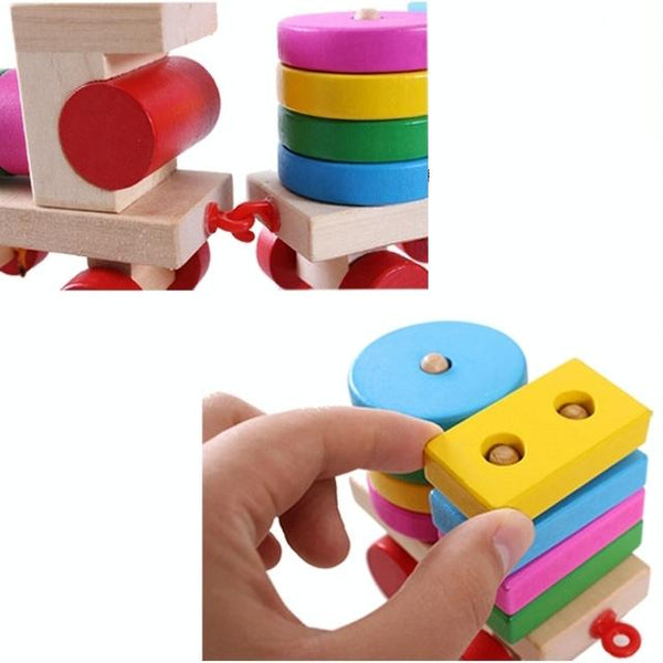 Wooden Train Shape Building Blocks Toy Baby Early Learning Training Toy