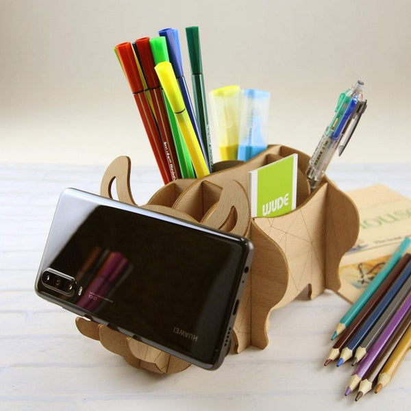 WUDE 002 Rhino Pen Holder Phone Stand 3D Three -Dimensional Puzzle Board Children Wood Puzzles Model