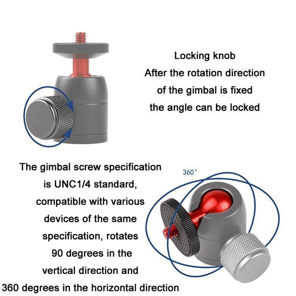4. The gimbal screw specification is UNC1/4 standard, compatible with a variety of devices of the same specification, rotates 90 degrees in the vertical direction and 360 degrees in the horizontal direction