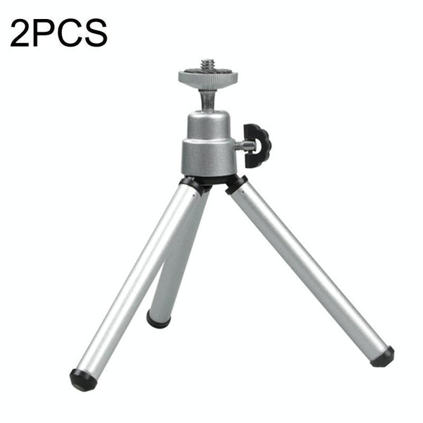 2PCS Projector Phone Stand Desktop Portable Telescopic Mini Metal Tripod, Style: 2 Sections (Silver)