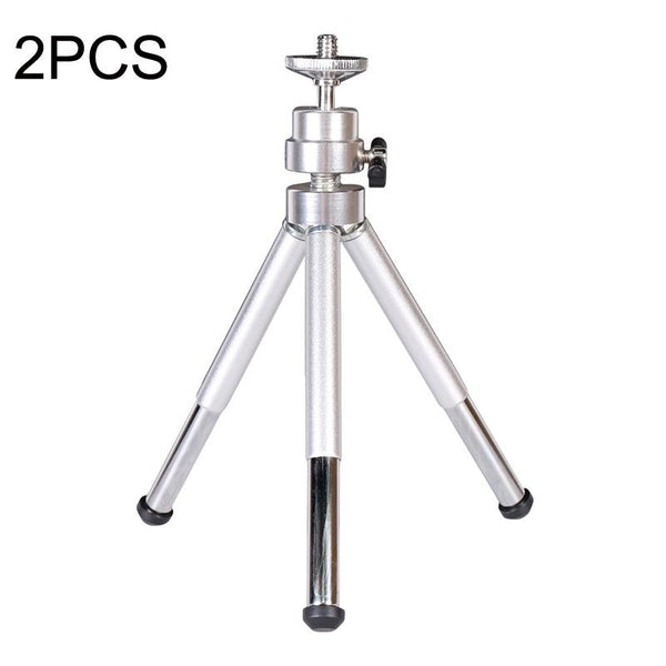 2PCS Projector Phone Stand Desktop Portable Telescopic Mini Metal Tripod, Style: 3 Sections (Silver)