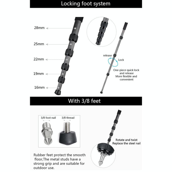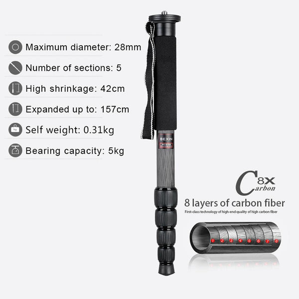 BEXIN MCS285 Portable Travel Outdoor DSLR Camera Carbon Fiber Monopod Holder (Black)