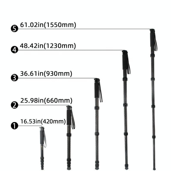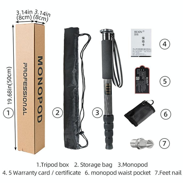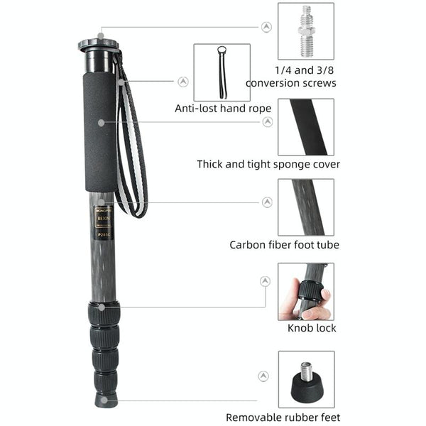 BEXIN P285C Carbon Fiber DSLR Camera Monopod Mountaineering Stick Photography Selfie Holder