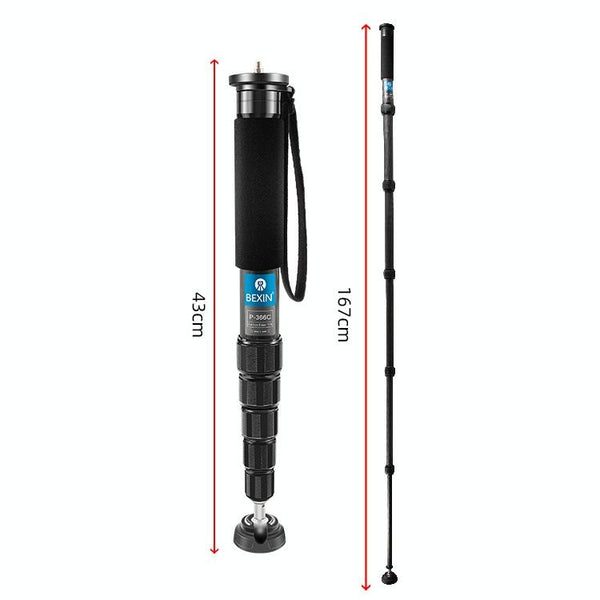 BEXIN P366C Camera Carbon Fiber Monopod Travel Live Selfie Bracket Holder