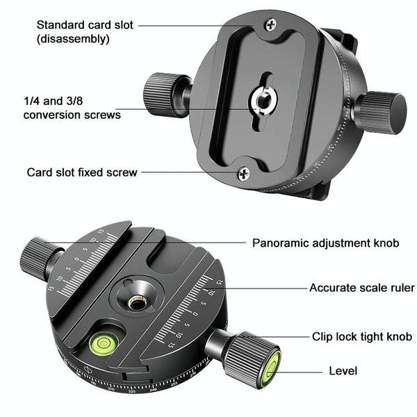 BEXIN QJ08-S Panoramic Rotary Quick Release Clamp Base Tripod Mount with Quick Release Plate