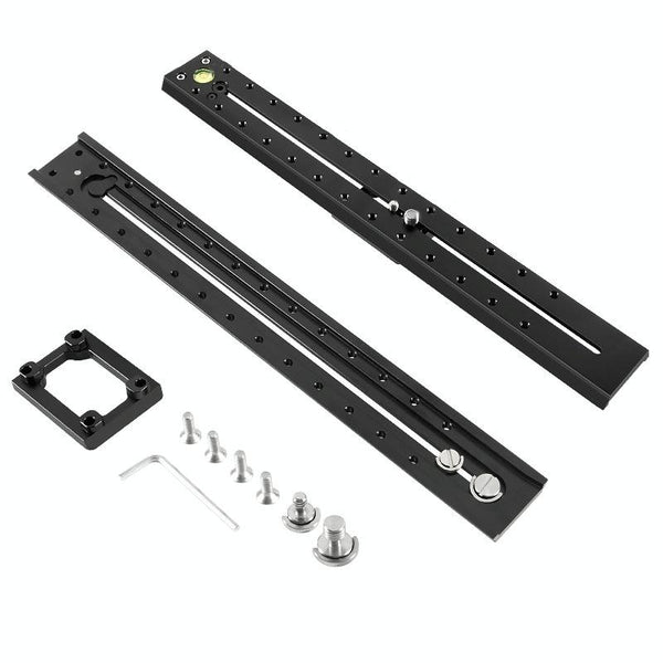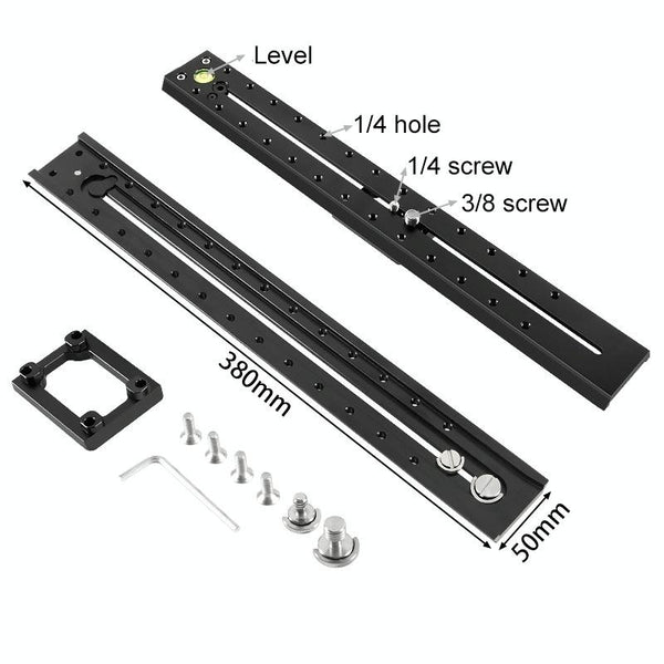 5. The plate measures 380mm lengthquick release plate to provide additional leverage for larger cameras and provide more room for mounting optional components, such as a rod mount for a follow focus motor, zoom motor, or lens support.