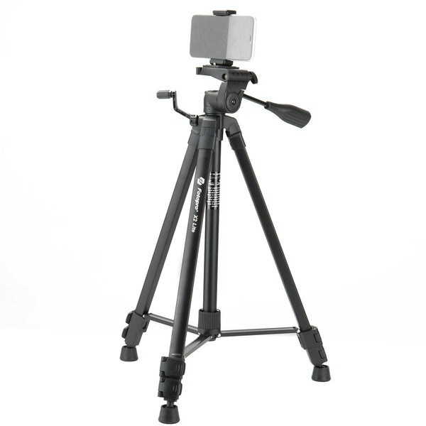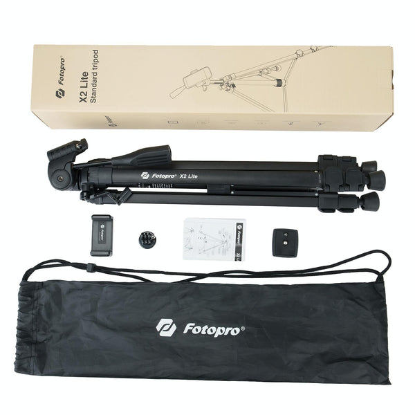 Fotopro X2 Lite 3-Section Folding Legs Tripod Mount with U-Shape Three-Dimensional Tripod Head & Phone Clamp for DSLR & Digital Camera, Adjustable Height: 53-157cm (Black)