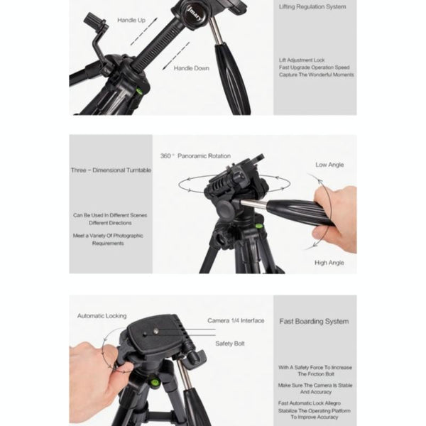 JMARY KP-2203 Portable Aluminum Alloy Telescopic SLR Camera Phone Photography Tripod(Black)