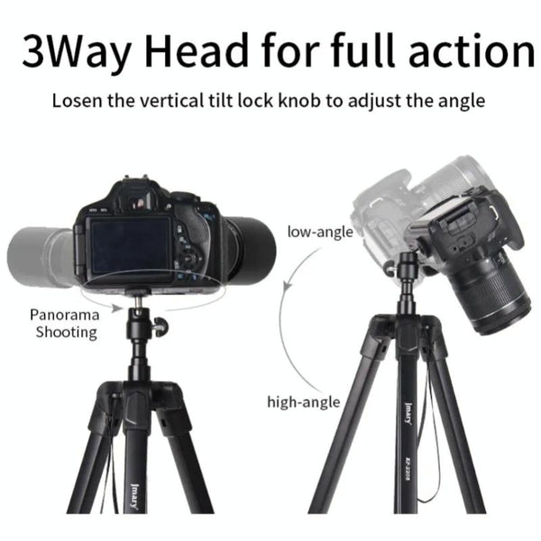 2. 3-Way Head for Full Action: Loosen the vertical tilt lock knob to adjust the angle