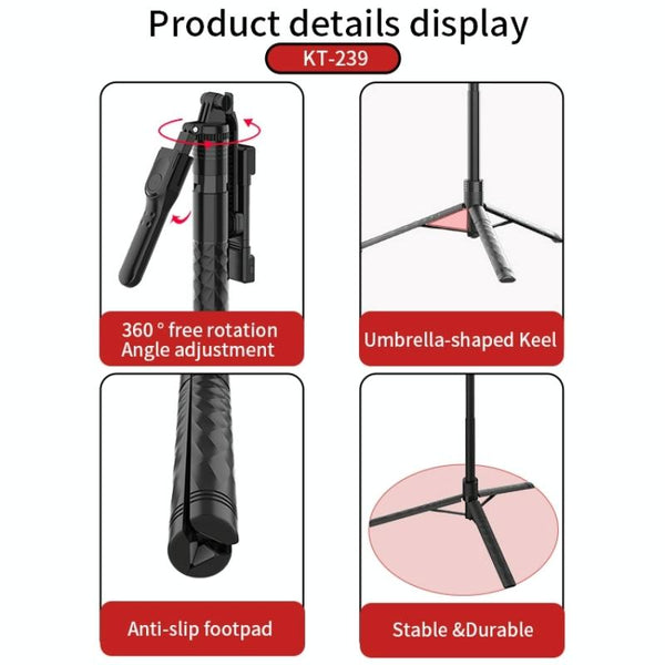 JMARY KT239 Rotation Design Camera Mount Holder 1.75m Telescopic Phone Selfie Stick Tripod