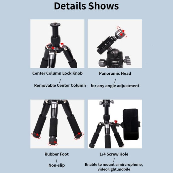 JMARY KT25+H30 For Selfie Live Streaming Lightweight Portable Desktop Mini Tripod Set