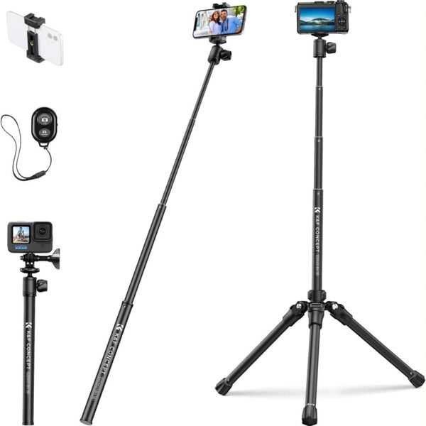 K&F Concept E224A3 DSLR Phone Tripod 67 inch Aluminum Mini Portable Video Camera Tripod(Black)