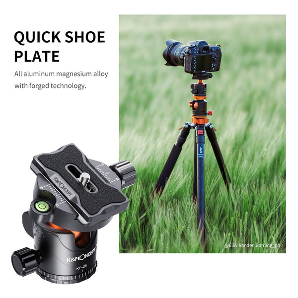4. 360 degree Panorama: The 28mm large KF-28 metal ball head provide 10kg load capacity, it can be rotated 360 degrees, helping to expand dslr camera activity range when panoramic shooting.
