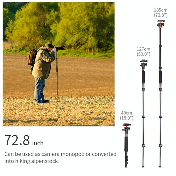 3. 4 sections leg can be folded to 18.1 Inchthe N. weight with ball head is 3.73lbs which is super portable with tripod carrying bag.
