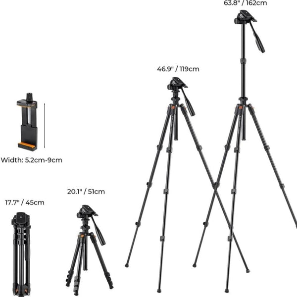 K&F Concept KF09.115 For DSLR Camera Phone Holder Stand 64inch Lightweight Aluminum Tripod