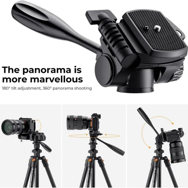 2. 3-Way Swivel Pan Head&Quick Release Plate: 360-degree panoramic rotation allows you to take photos at any angle in horizontal and vertical directions; With standard 1/4 inch screw mount compatible for all digital cameras, most camcorders, GoPro devices, binocular, telescopes etc.