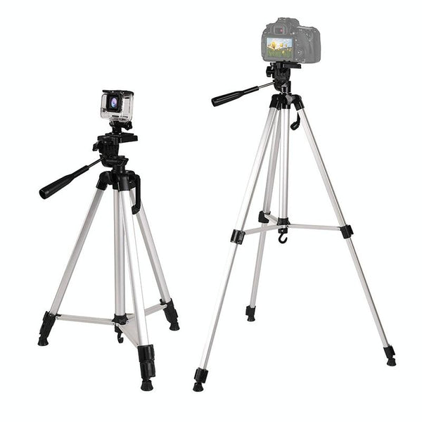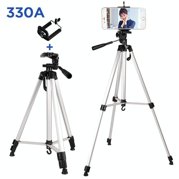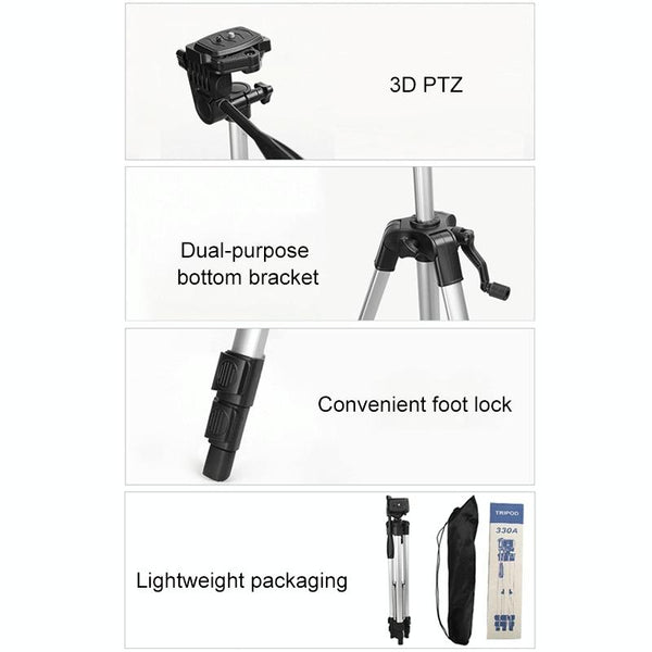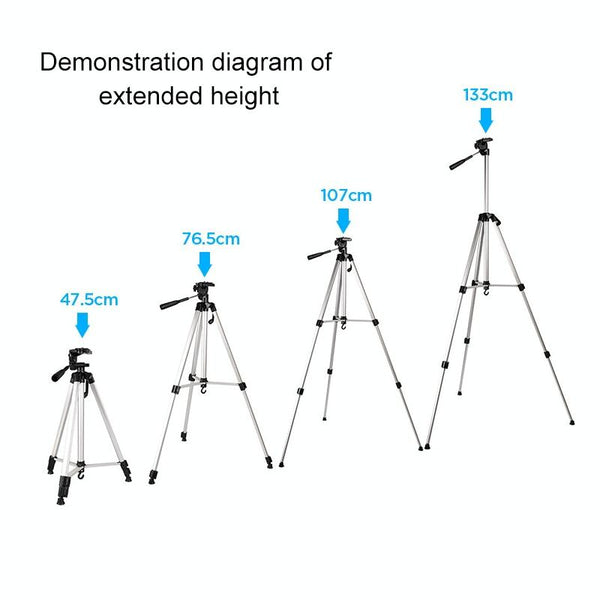 Live Broadcast Tripod 3-Section Folding Legs Aluminum Alloy Tripod Mount with U-Shape Three-Dimensional Tripod Head & Phone Clamp for DSLR & Digital Camera, Adjustable Height: 47.5-133cm