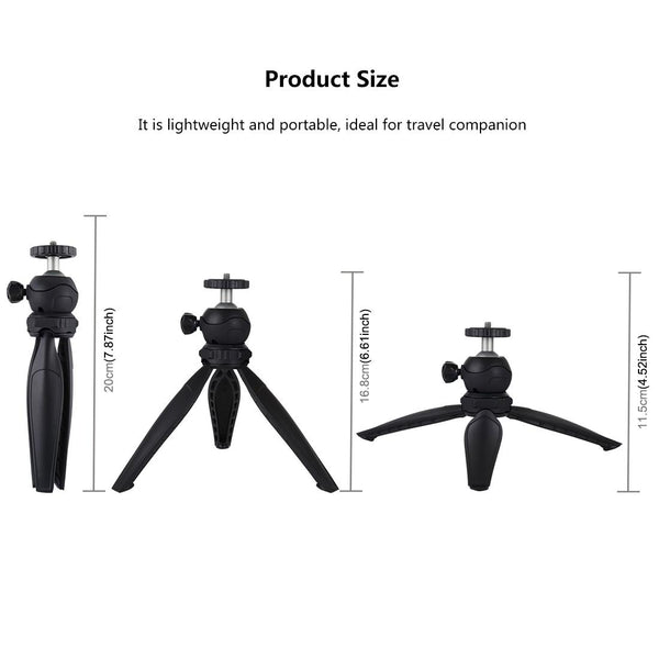 PULUZ 20cm Pocket Plastic Tripod Mount with 360 Degree Ball Head for Smartphones, GoPro, DSLR Cameras(Black)