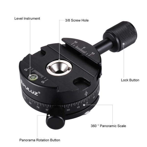 PULUZ Aluminum Alloy 360 Degree Rotation Panorama Ball Head with Quick Release Plate for Camera Tripod Head