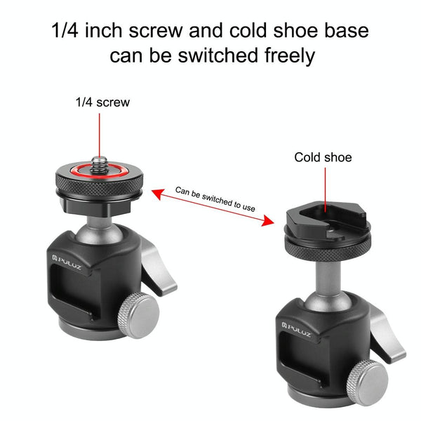 PULUZ Dual Cold Shoes Aluminum Alloy Tripod Ball Head Adapter (Black)