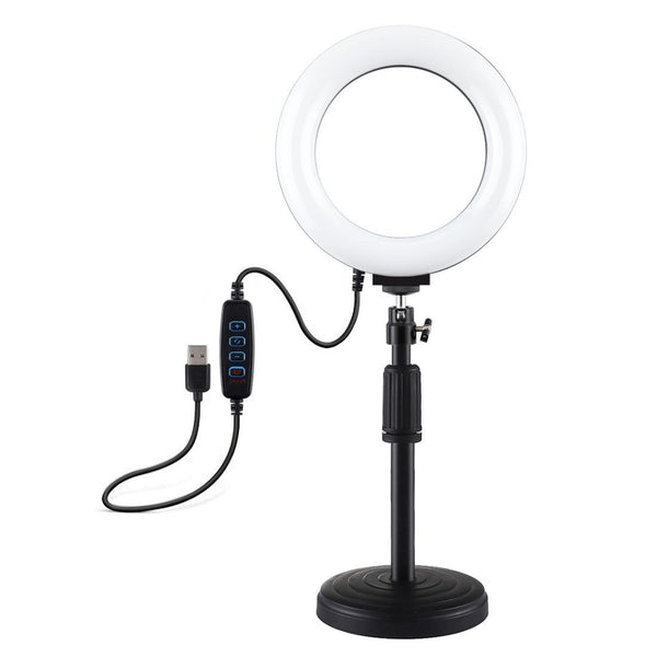 PULUZ Round Base Desktop Mount + 6.2 inch 3 Modes USB Dimmable LED Ring Vlogging Video Light, Adjustable Height: 18cm-28cm