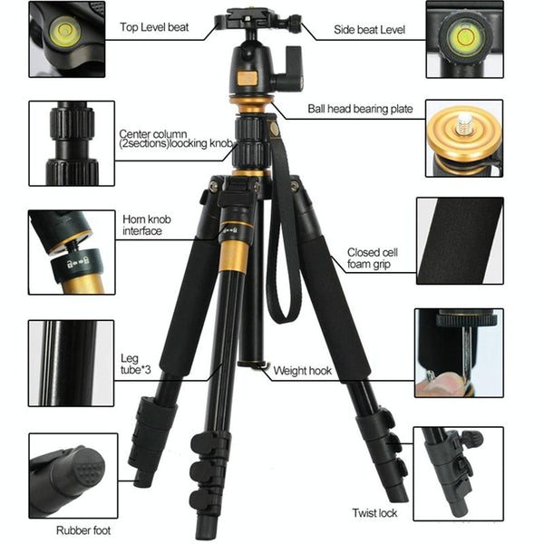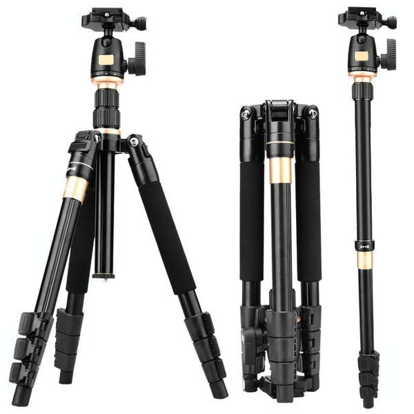 Q555 4-Section Folding Legs Aluminum Alloy Tripod Mount Monopod Holder with Ball Head