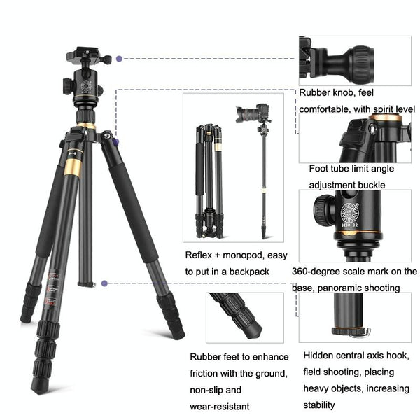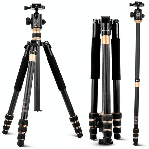 QingZhuangShiDai Q222C SLR Camera Carbon Fiber Portable Travel Tripod(Black)