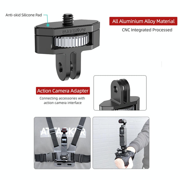 Sunnylife 1/4 inch Metal Adjustable Adapter For DJI Pocket 2 / FIMI PALM 2 / Insta360 One X-2(Dark Grey)