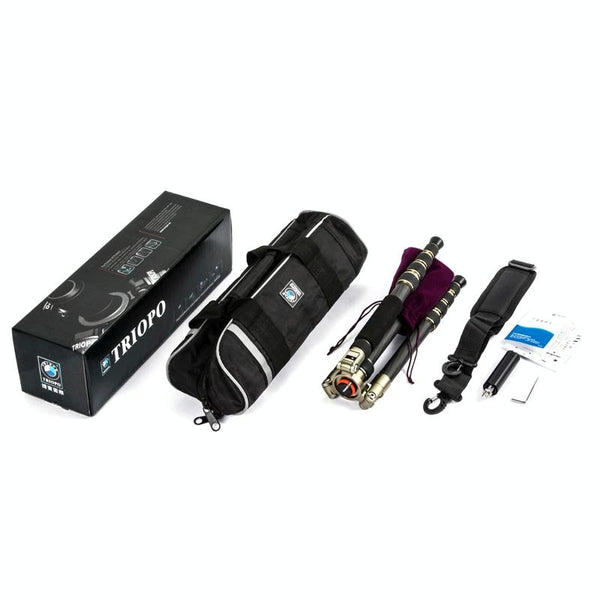 Triopo GT-2505x8.C Adjustable Portable Carbon Fiber Tripod (Gold) with B-1 Aluminum Ball Head (Black) for Canon Nikon Sony DSLR Camera