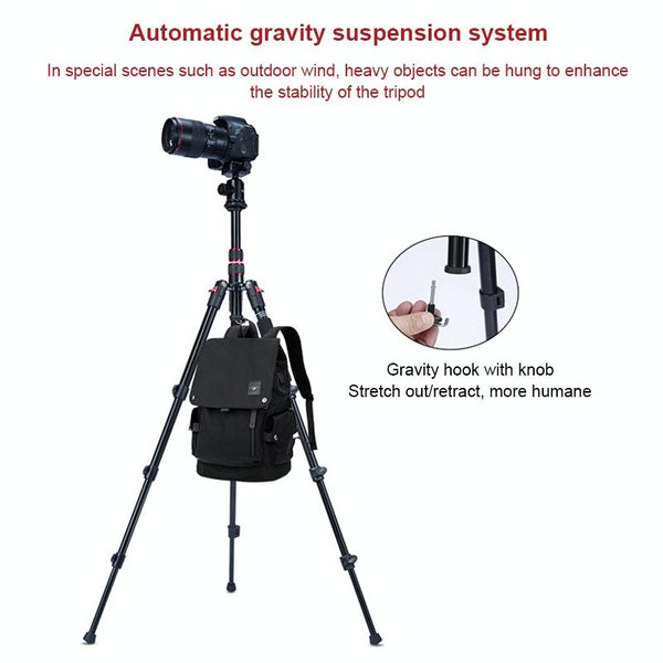 11. Automatic gravity suspension system: outdoor windy and other special scenes, can hang heavy objects to enhance the stability of the tripod