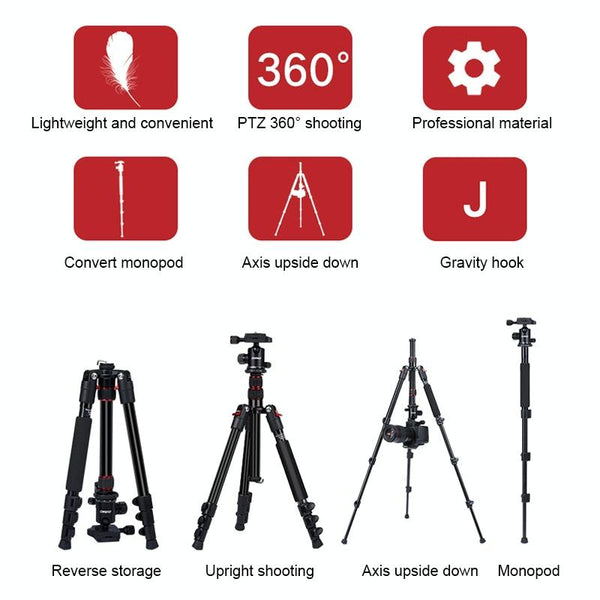 TRIOPO K2508S+B1S Adjustable PortableAluminum Alloy Tripod with Ball Head for SLR Camera(Red)