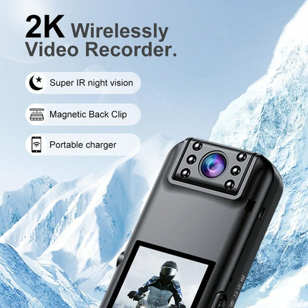 2K HD WiFi Night Vision Camera, Rotating Lens, Back Clip (Black)