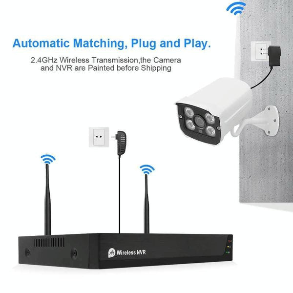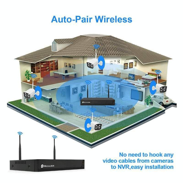 Secure your home or business with this easy-to-install Wireless 2MP 1080P WiFi NVR Security Camera System. Enjoy peace of mind with crystal-clear 1080P Full HD video, powered by a Hisilicon 3518 EV300 image sensor and H.265 video encoding for smooth, high-quality footage. Benefit from advanced AI humanoid detection, minimising false alarms and focusing on real threats. This completely wireless system requires no complicated wiring, making setup quick and simple. With exceptional low-light performance (0.001 Lux) and a 1/4 inch aluminium housing, these robust cameras provide reliable surveillance day and night. Ideal for homes, shops, offices, and villas, this system offers comprehensive security monitoring wherever you need it. Key features include: wireless connectivity, remote viewing, motion detection, and two-way audio (if applicable - check product specs). Upgrade your security today.