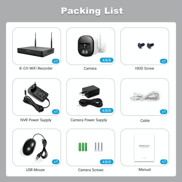 - 1 x 12V 2A Power Adapter (NVR)