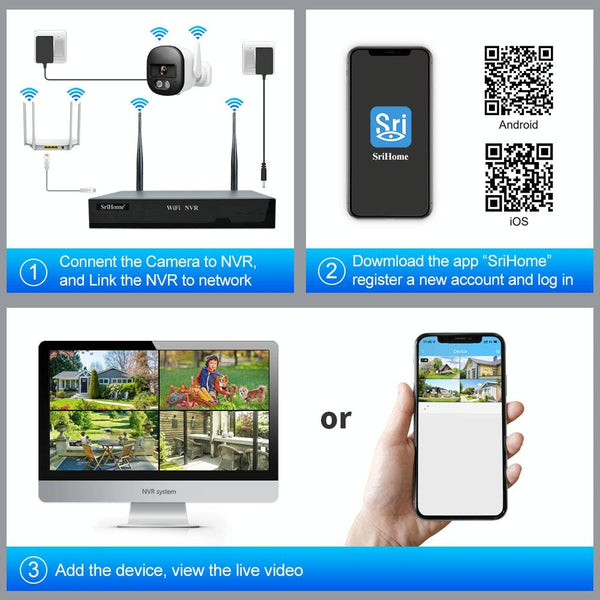 - Easy Setup & Remote Access: Quickly set up the system and access live and recorded footage remotely from anywhere via the SriHome app.